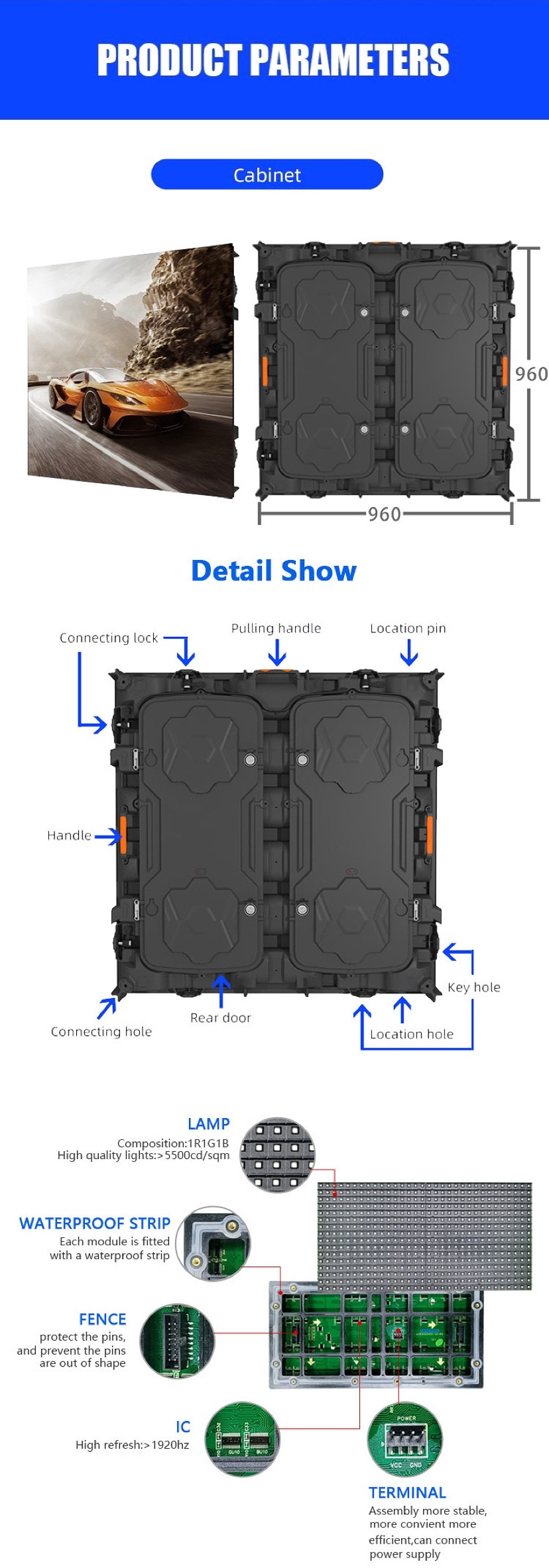 ,etc. 2.Type:we can customize the product according to customers' needs, you just need to provide the requirements details and also specify the lamp bead brand, ic brand. 4.Quality Assurance: using Nationstar, Nichia, Cree,Kinglight gold and Copper Wire,big size rgb chips, long service life, low failure rate; original pvc plastic and even aluminum material, good toughness, high and low temperature resistance, V0 grade flame retardant, UVresistant 5.Application:shopping mall, large building glass wall, stage background led display, casino, carnival, concert, exhibition, chain shops and clothes shop, even in bank window, etc.