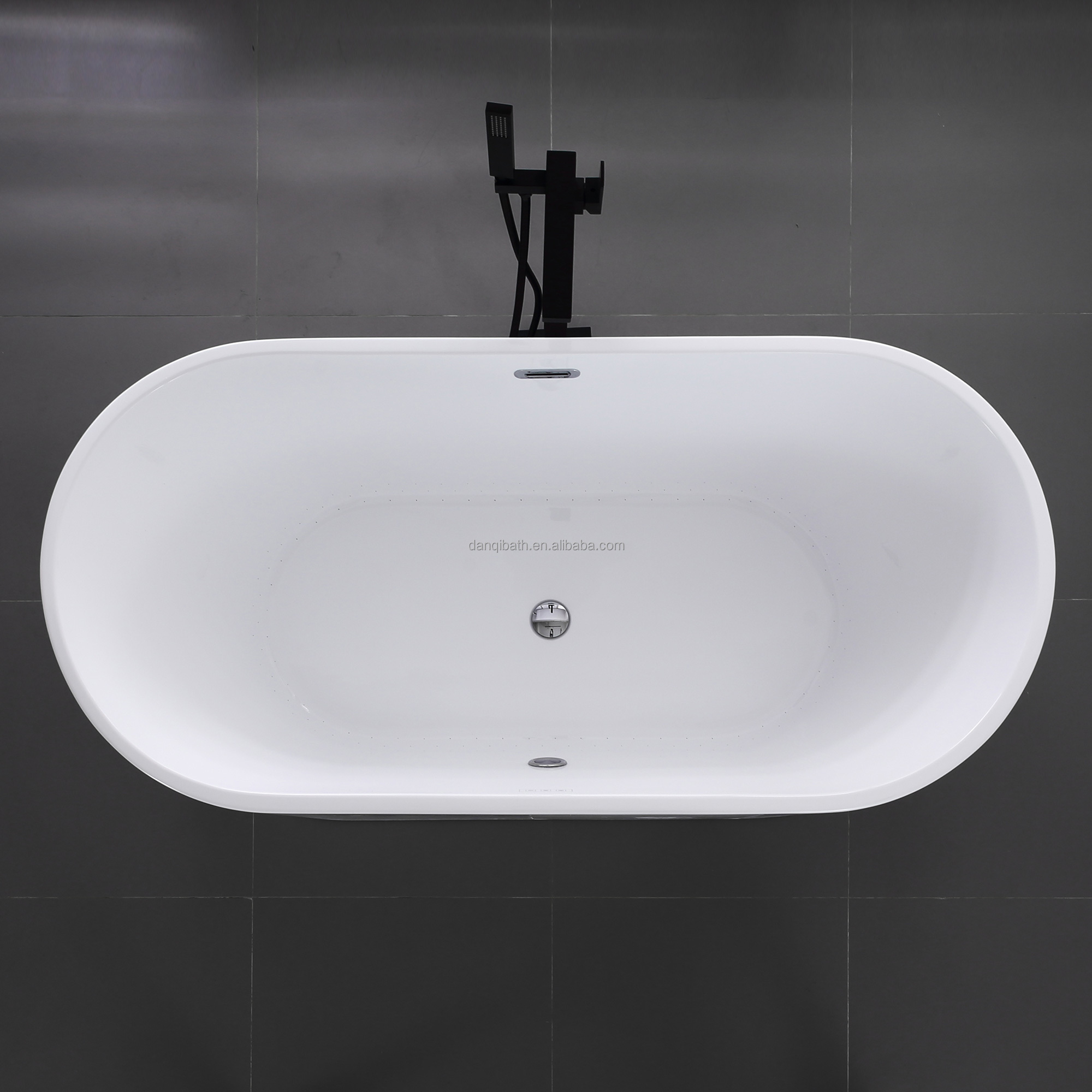 Made of 100% acrylic board,reinforced by FRP, 4pcs support feet , overflow and drain, seamless free standing bathtub