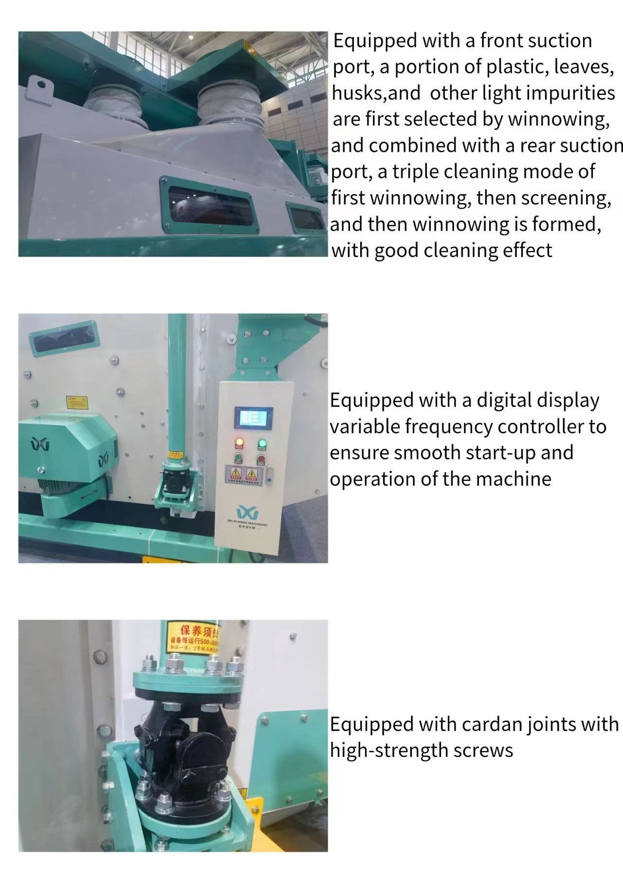 The Rotary Vibration Cleaner is mainly used for cleaning grains such as wheat, paddy rice, maize, coffee beans, soybeans, etc. It can effectively remove large and small impurities in raw grains
