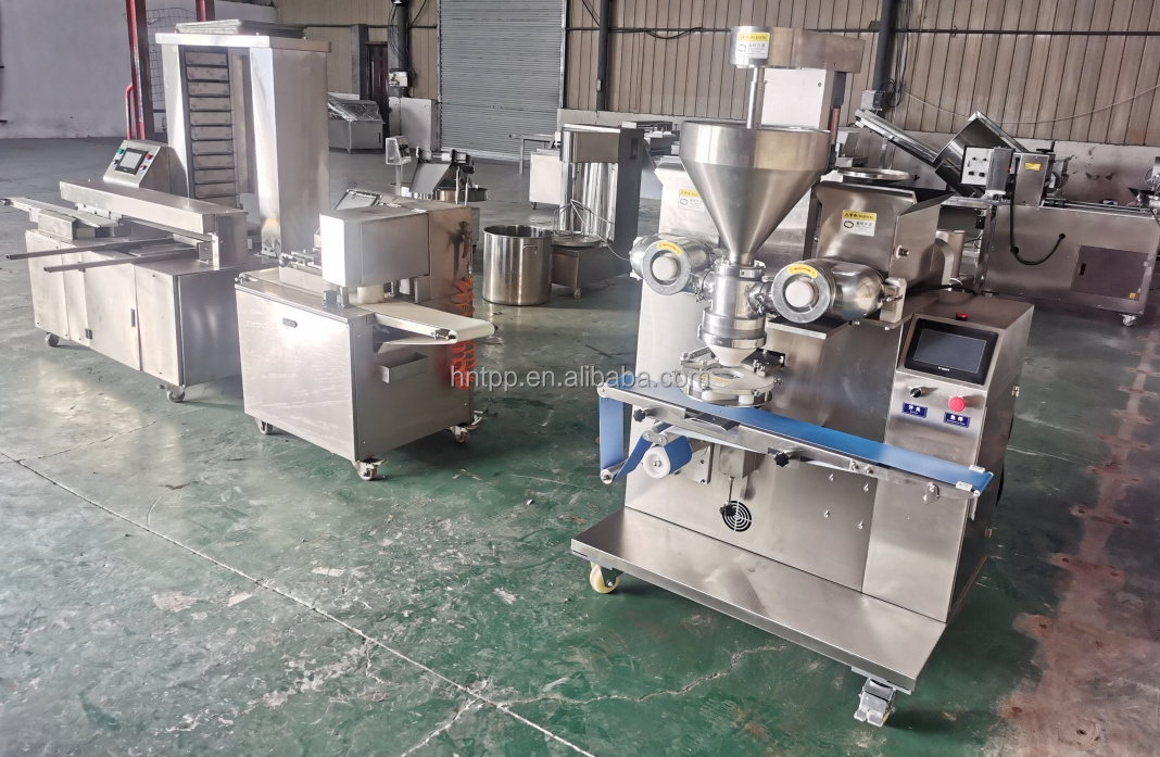 The moon cake automatic molding machine is used for the forming of moon cakes in the food industry. The moon cake's embryo can become any kind of moon cake with any geometry required by the moon cake printing mold.