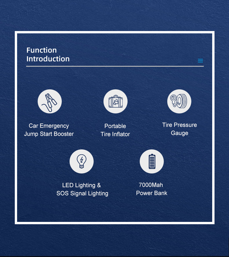 5 in 1 Multi-function Emergency Jump Starter & Portable Electric Tire Inflator Air Pump.