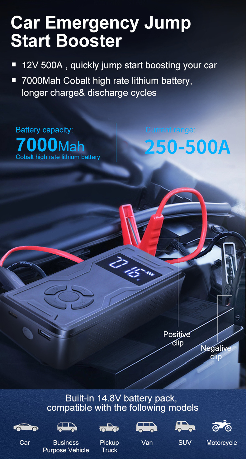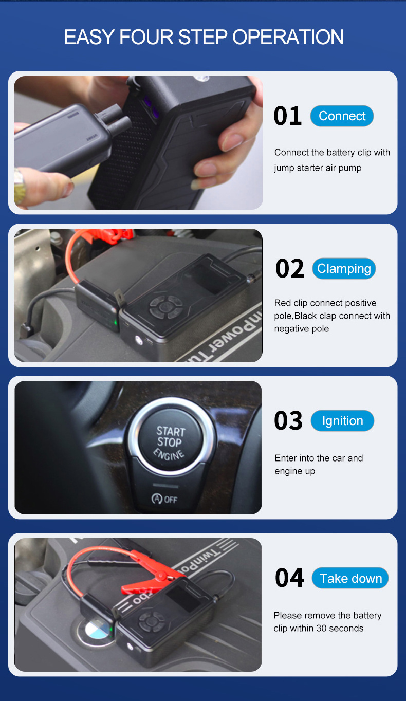 Built-in smart temperature protection sensor and chipset which make the jump starter air pump working in an environment with large temperature difference .