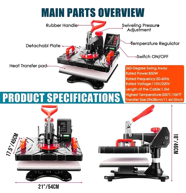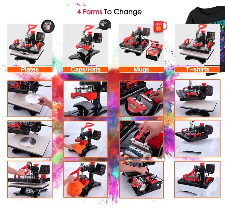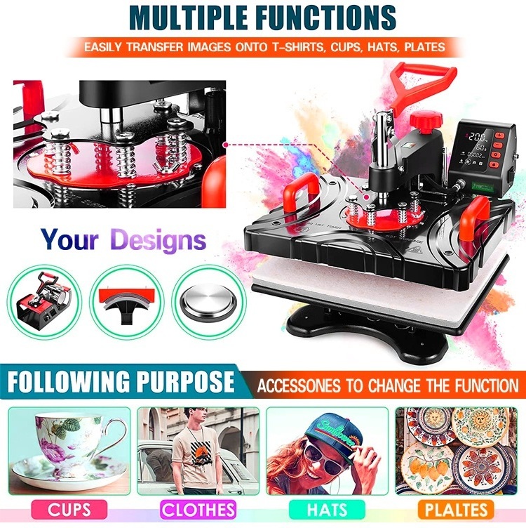 FREESUB Upgrade 8 in 1 Combo Heat press machine T shirt mug hat plate logo printing machines for small businesses