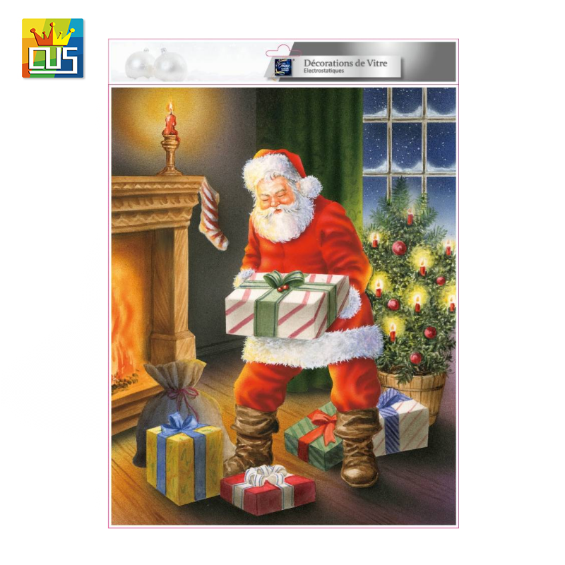 | christmas tree santa claus with candlelight vinyl static cling window stickers for christmas window decoration | |