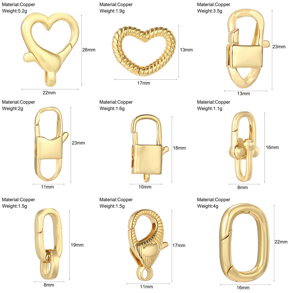 Assorted Brass Lobster Clasp Round Spring Clasp Claw Snap Hook Clasp With Pearl Peg Bail For Necklace Bracelet Keychain Making