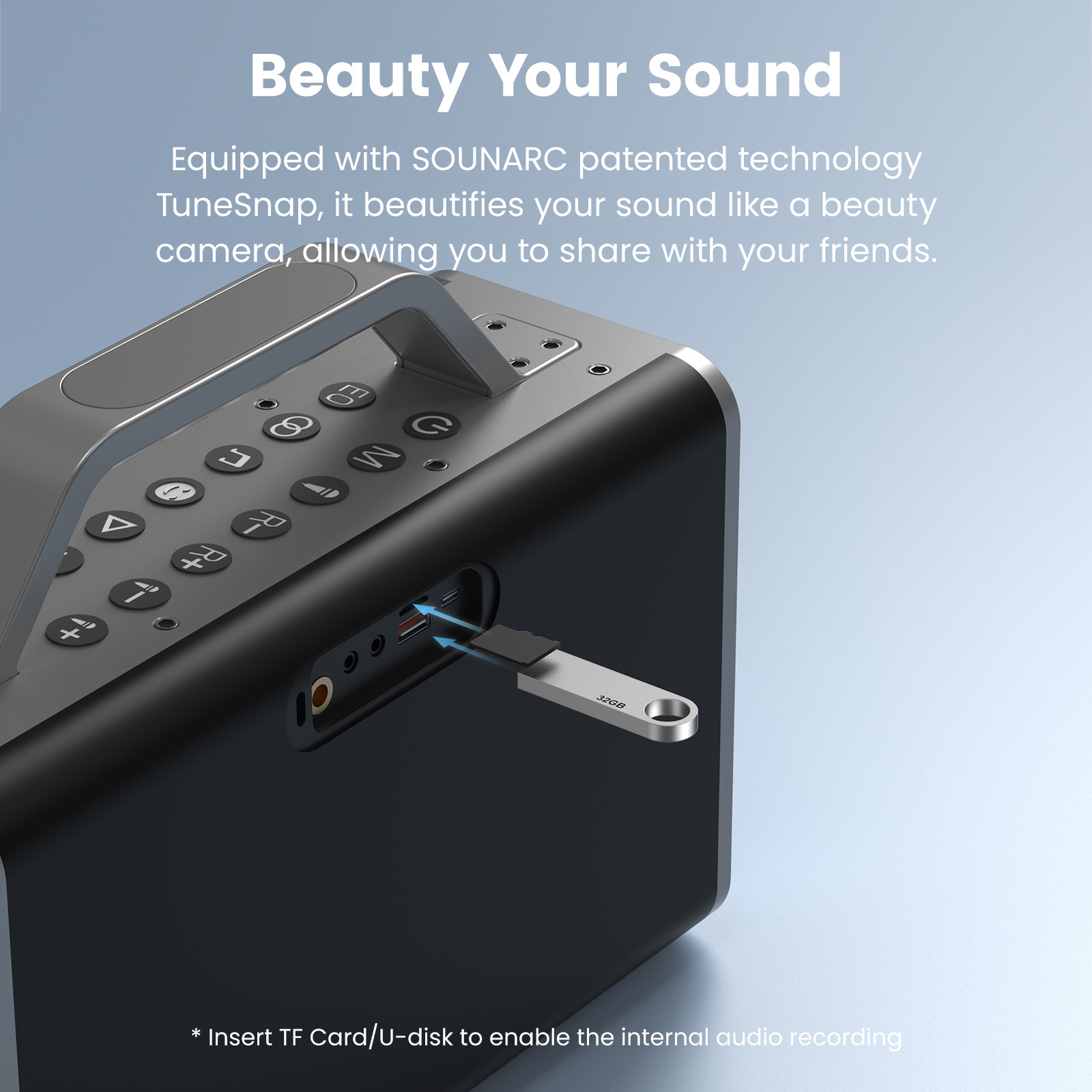 Equipped with SOUNARC patented technology TuneSnap, it beautifies your sound like a beauty camera, allowing you to share with your friends.
