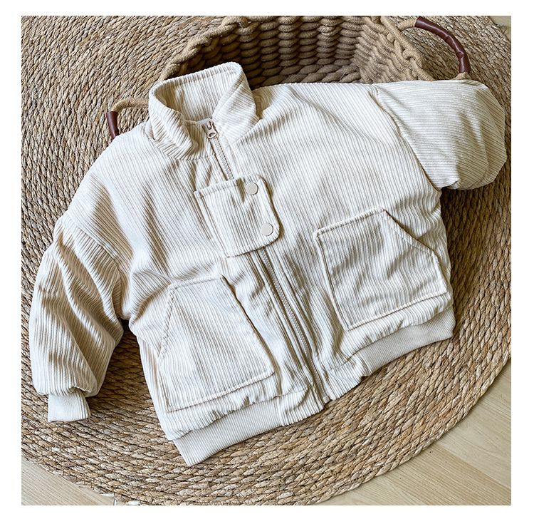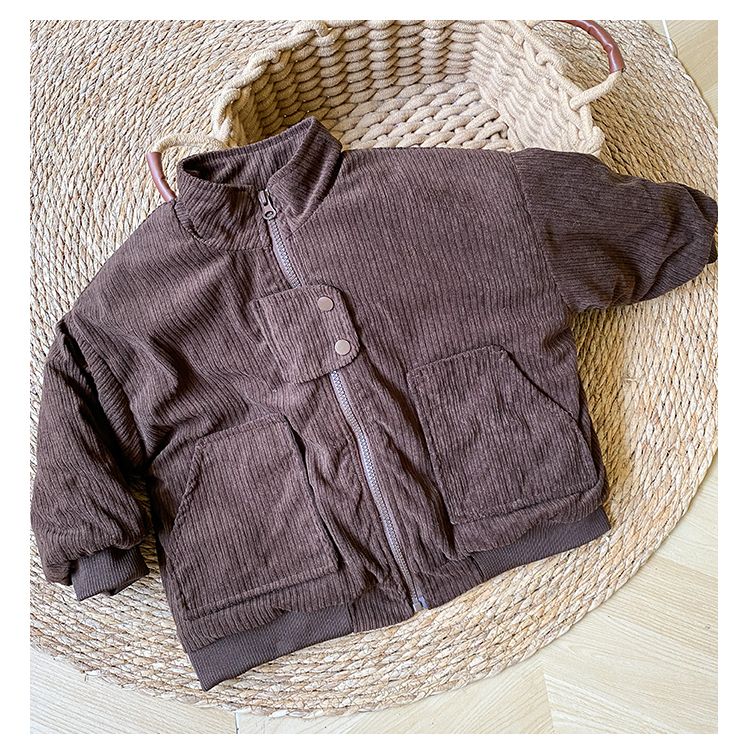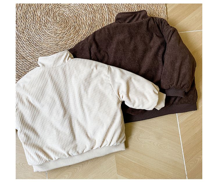 Children's corduroy cotton jacket with thickened velvet for women's clothing, winter warmth for boys' cotton clothing