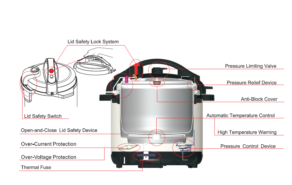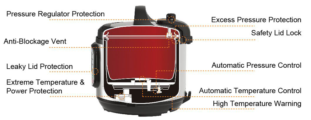 Cooking Time Presetting, LED Display, Non-Stick Coating Inner Pot, Overheat Protection, Pressure Release Device, Adjustable Pressure Setting
