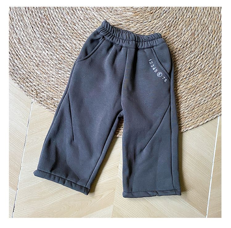 Children's velvet sports pants for autumn and winter, boys' straight leg pants, baby's spring and autumn girls' sanitary pants