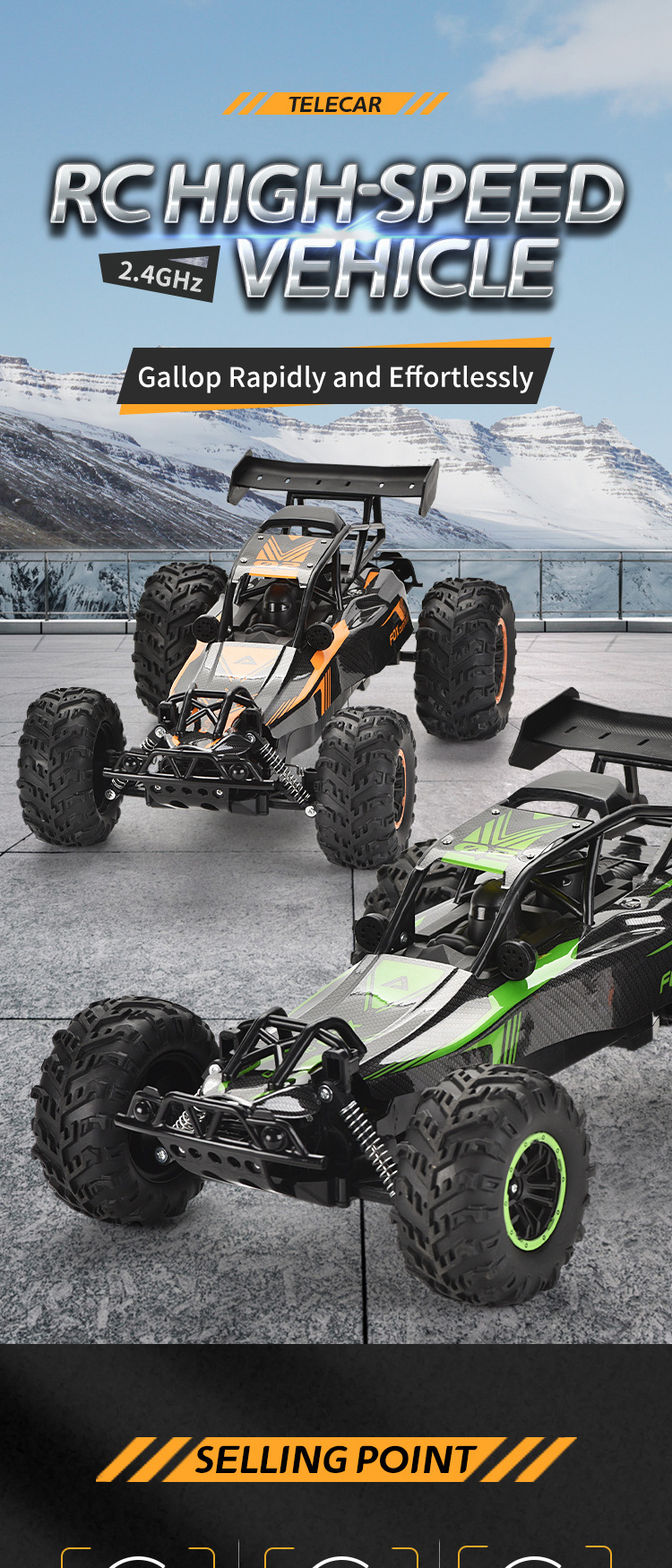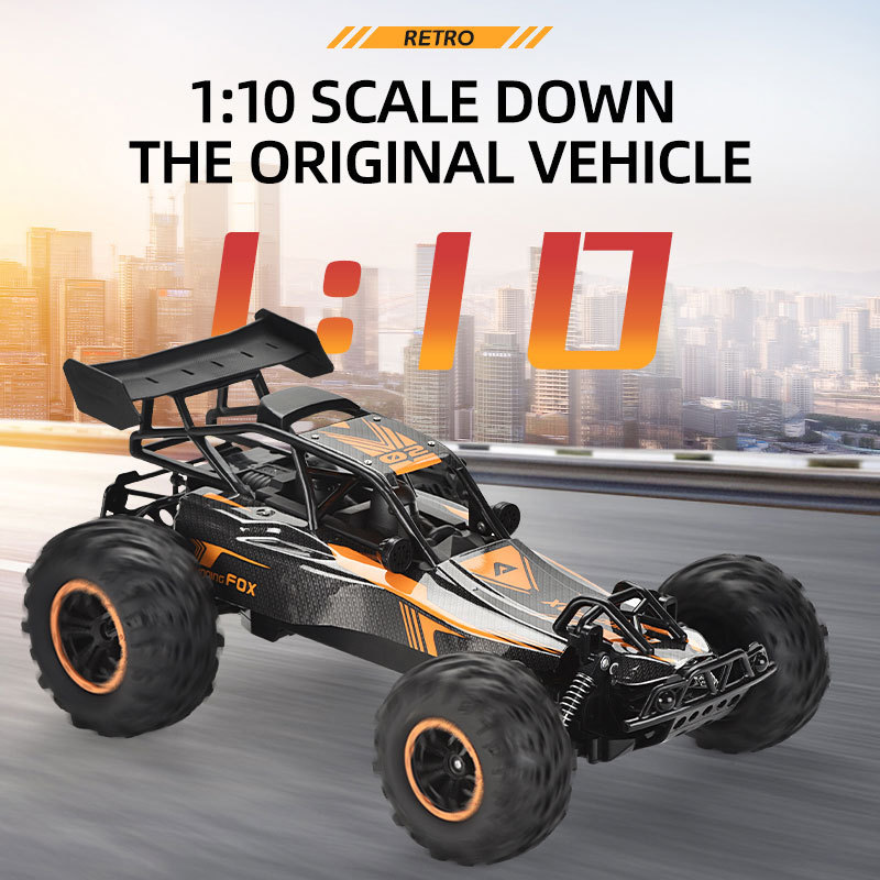 This high speed RC racer has professional and powerful off-road features and can easily adapt to all kinds of terrain, both indoors and outdoors. This remote control car can bring you a lot of fun.