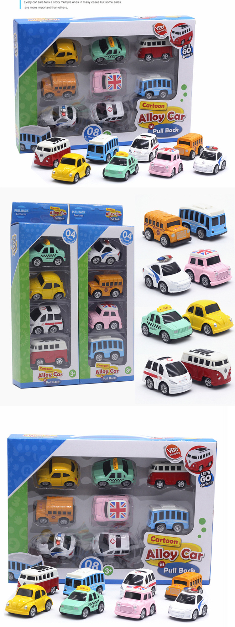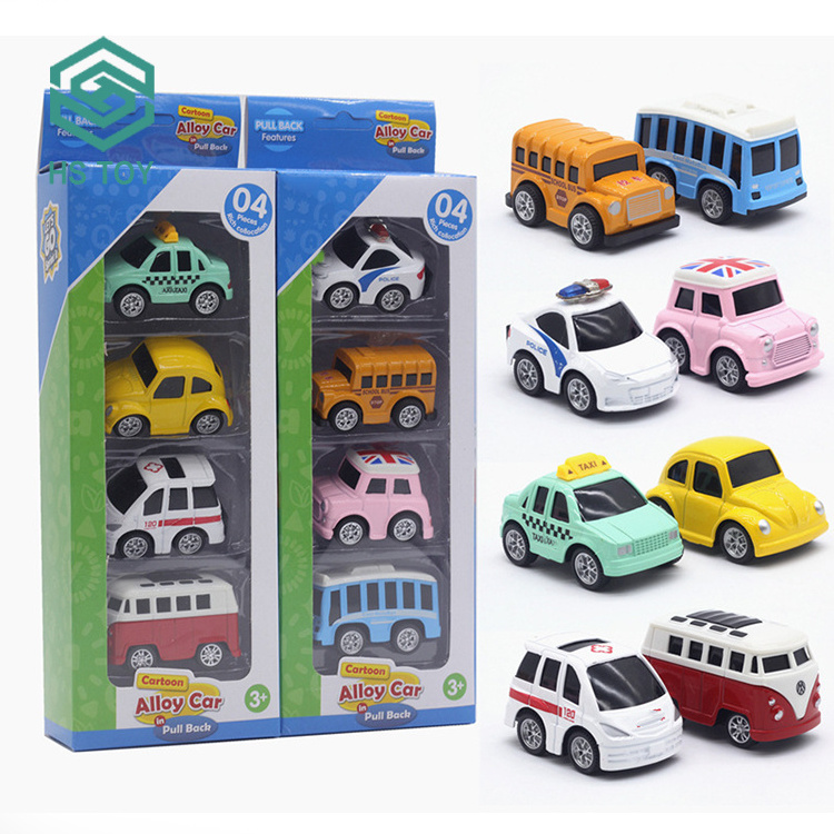 HS Wholesale Cartoon Mini Metal Free Wheel School Bus Car Die Cast Vehicle Toy With Pull Back