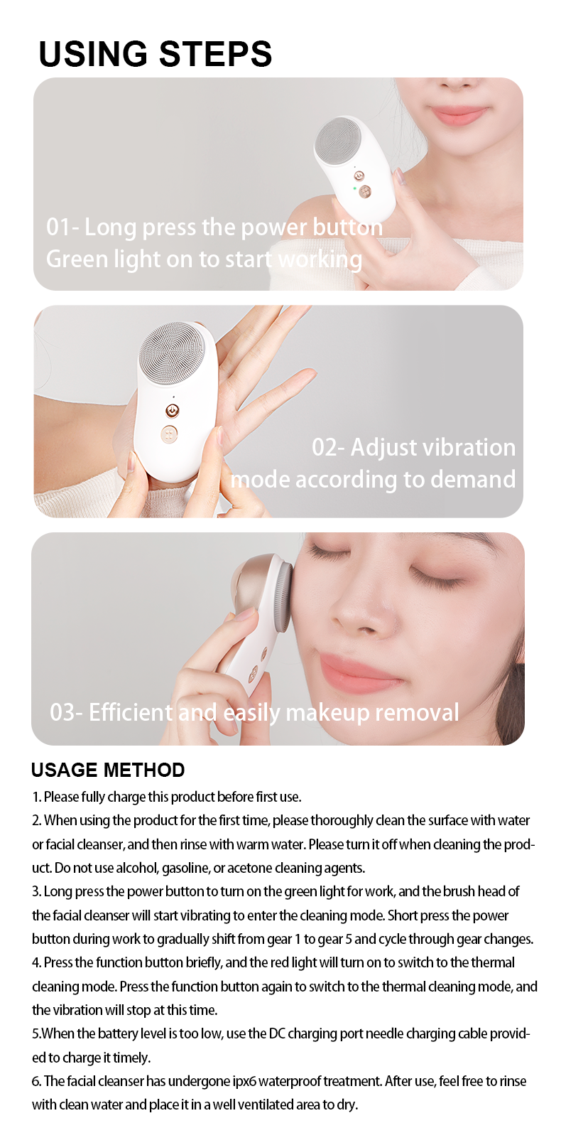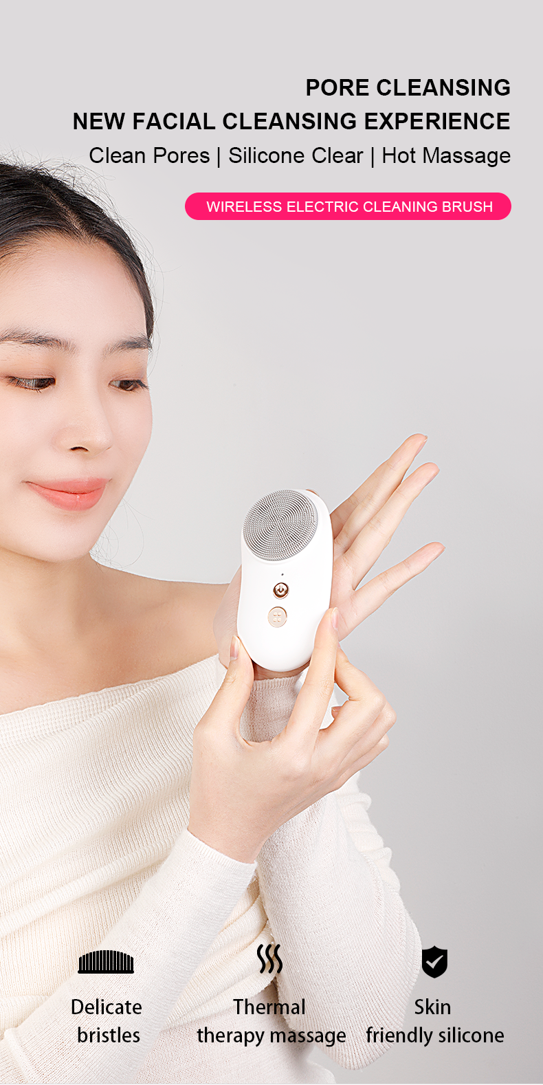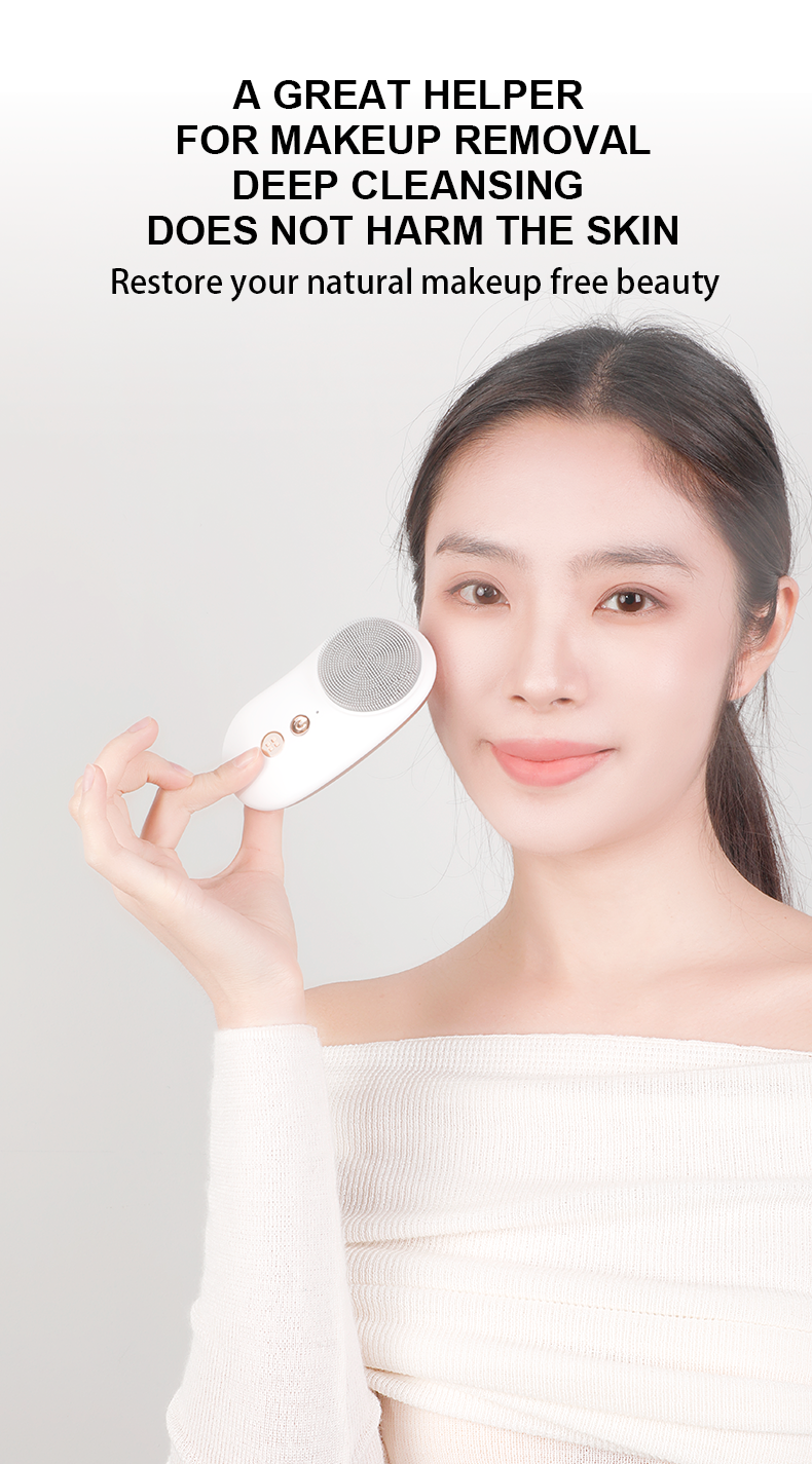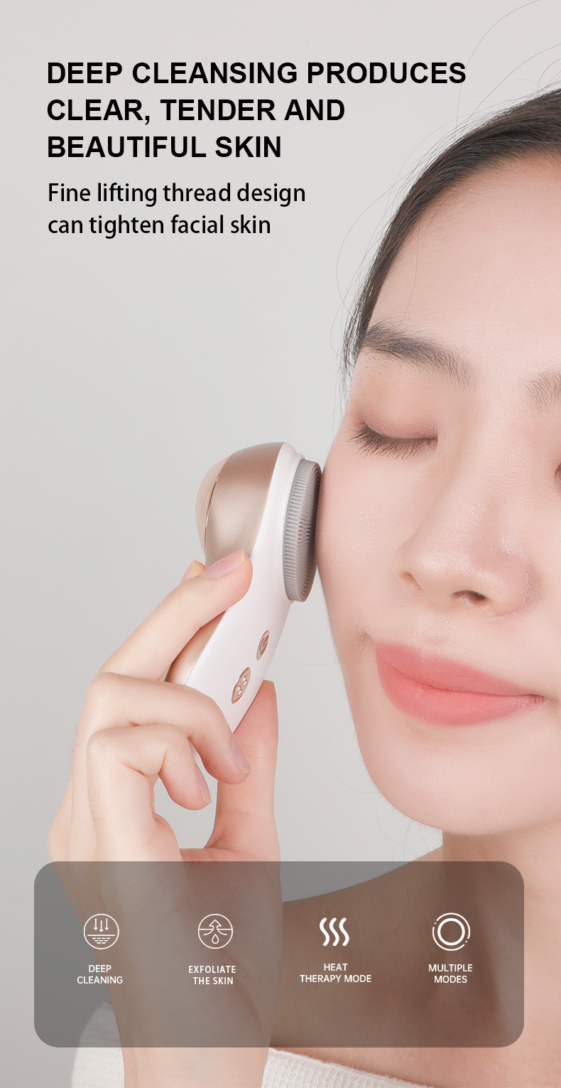 Heated Cashew-Style Silicone Ultrasonic Face Brush Effective Deep Pore Cleansing Tool