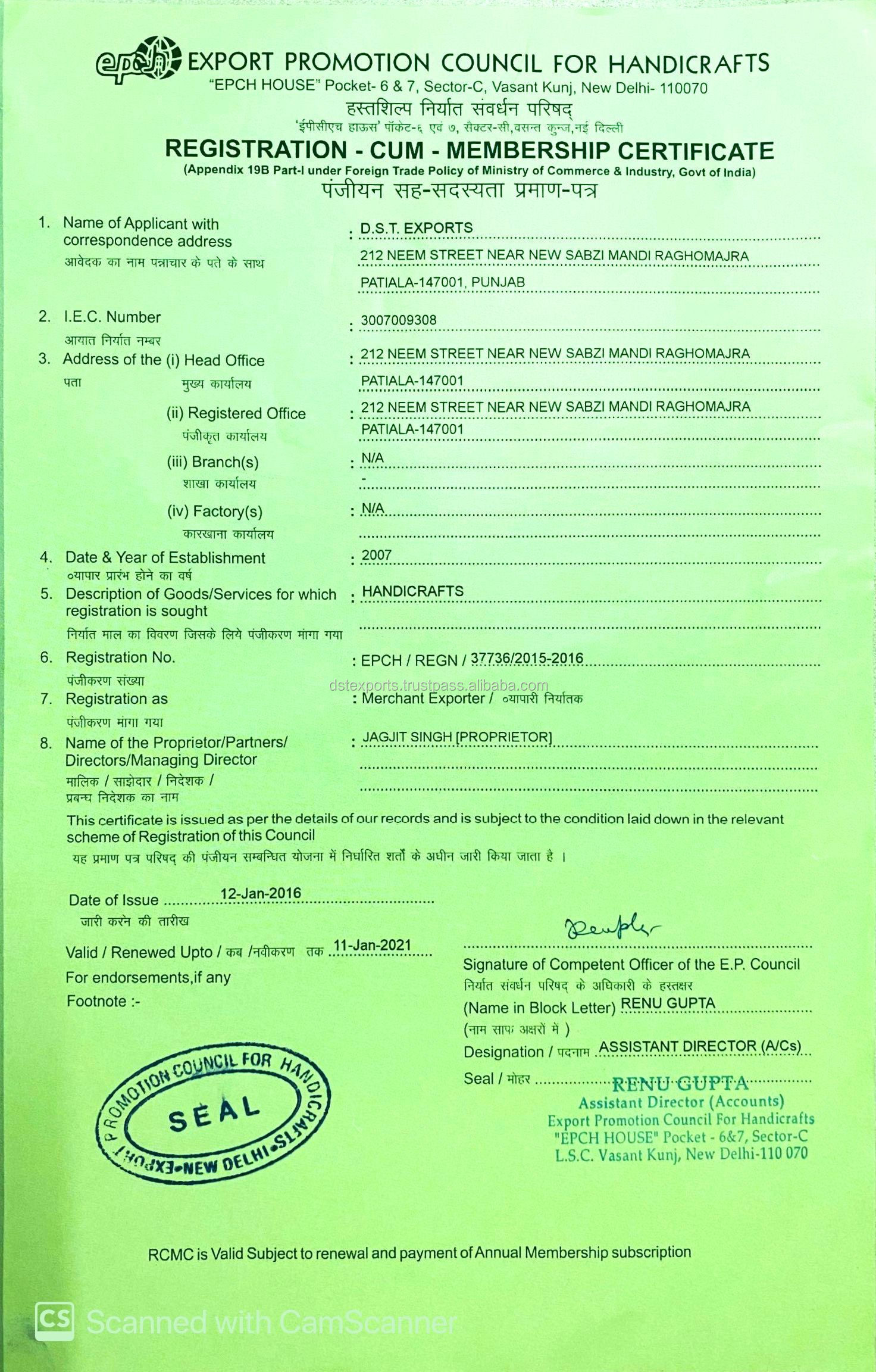 CERTIFICATE BY EXPORT PROMOTION COUNCIL