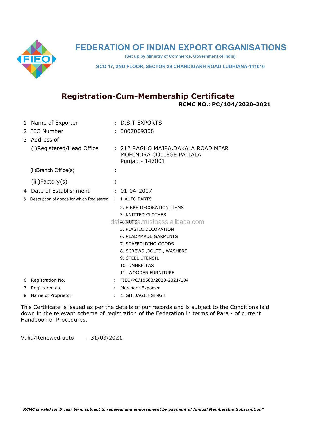 CERTIFICATE BY FEDERATION OF INDIAN EXPORT ORGANISATIONS