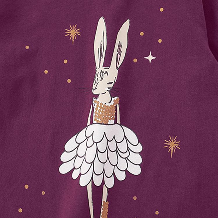 Autumn Girls' Cute Cartoon Rabbit Print Casual Set, Starry Long-Sleeve Top and Pants Two-Piece Outfit for Daily Wear.
