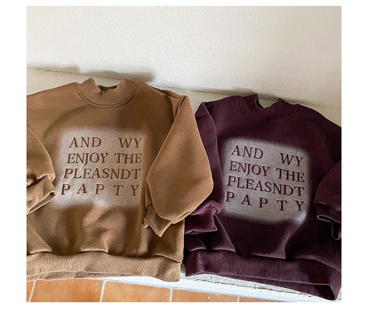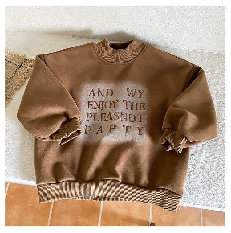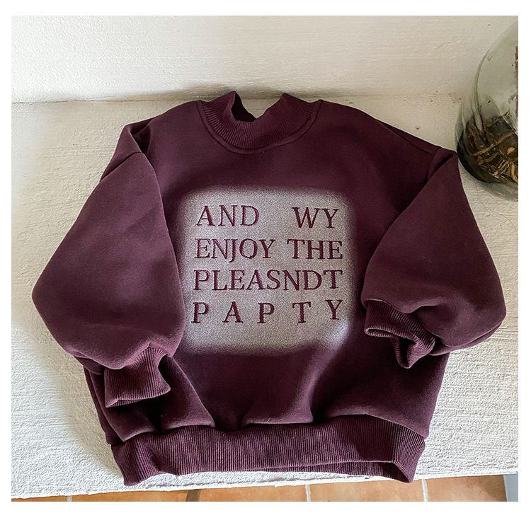 Children's fleece hoodie, autumn and winter clothes, boys and girls' western-style embroidered letters, thick loose top
