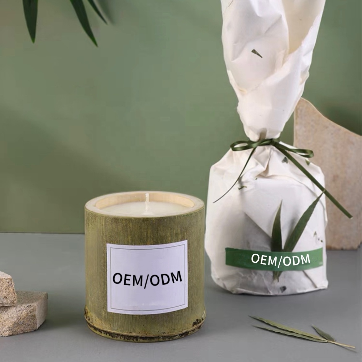 Alibaba China Customised Branded Relax Fall Based Floral Pine Jasmine Cylinder Bamboo Scented Candle With Logo