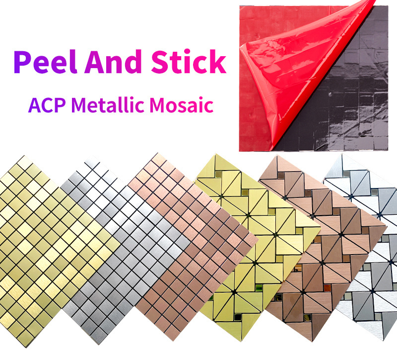 Aluminum Composite Panel Mosaic Metallic Peel And Stick Backsplash Wall Tile