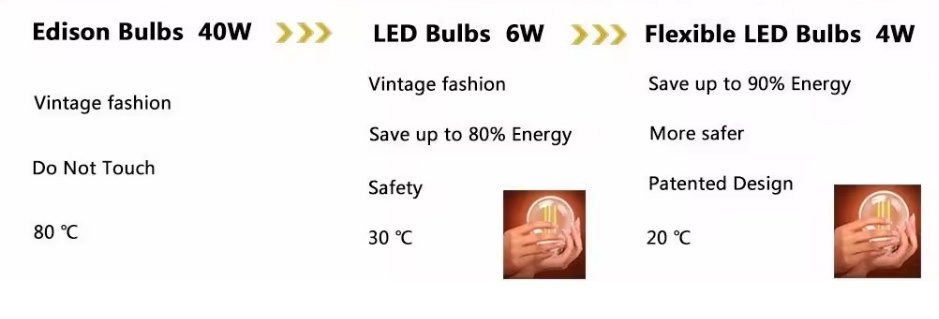 The LED filament technology offers a 360 degree beam angle light pattern and unique Flexible/BENT LED. The bulb uses a clear glass bulb, unlike most LED lights, so it is just like an incandescent bulb. The true warm white light that is styled to look exactly like one of the very old incandescent bulbs makes you relax.