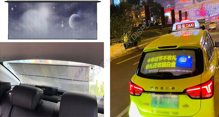 It is a product installed behind the car rear window to display commercials as vehicle drives around. Unlike the traditional display, its transparency reaches up to 85%, as a result, driver can still enjoy a great sight outside the car from rear-view mirror. which brightness up to 4000 nits, car rear window transparent LED display perfectly delivers commercials behind car rear glass.