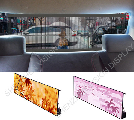 Car rear window transparent led display is high brightness high transpacency.Its brightness ≥ 4000cd/sqm ,transparency ≥ 70%. The driver can still enjoy excellent visual effects from the rear glass of the car.
