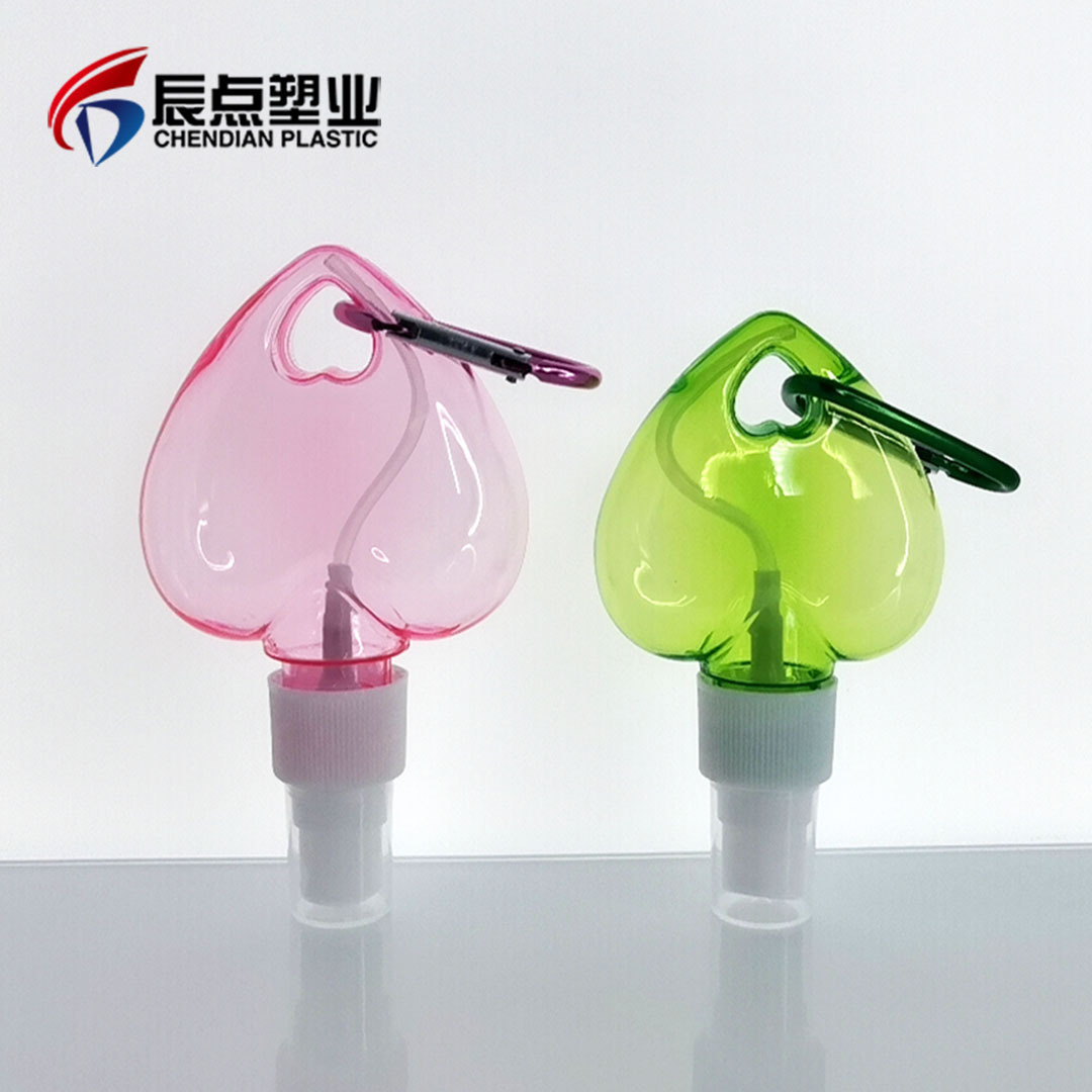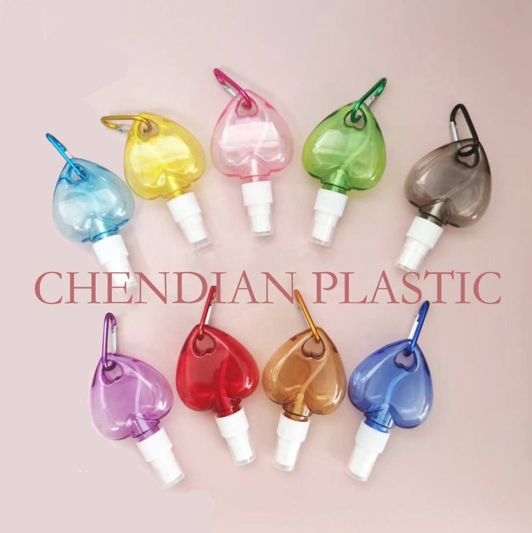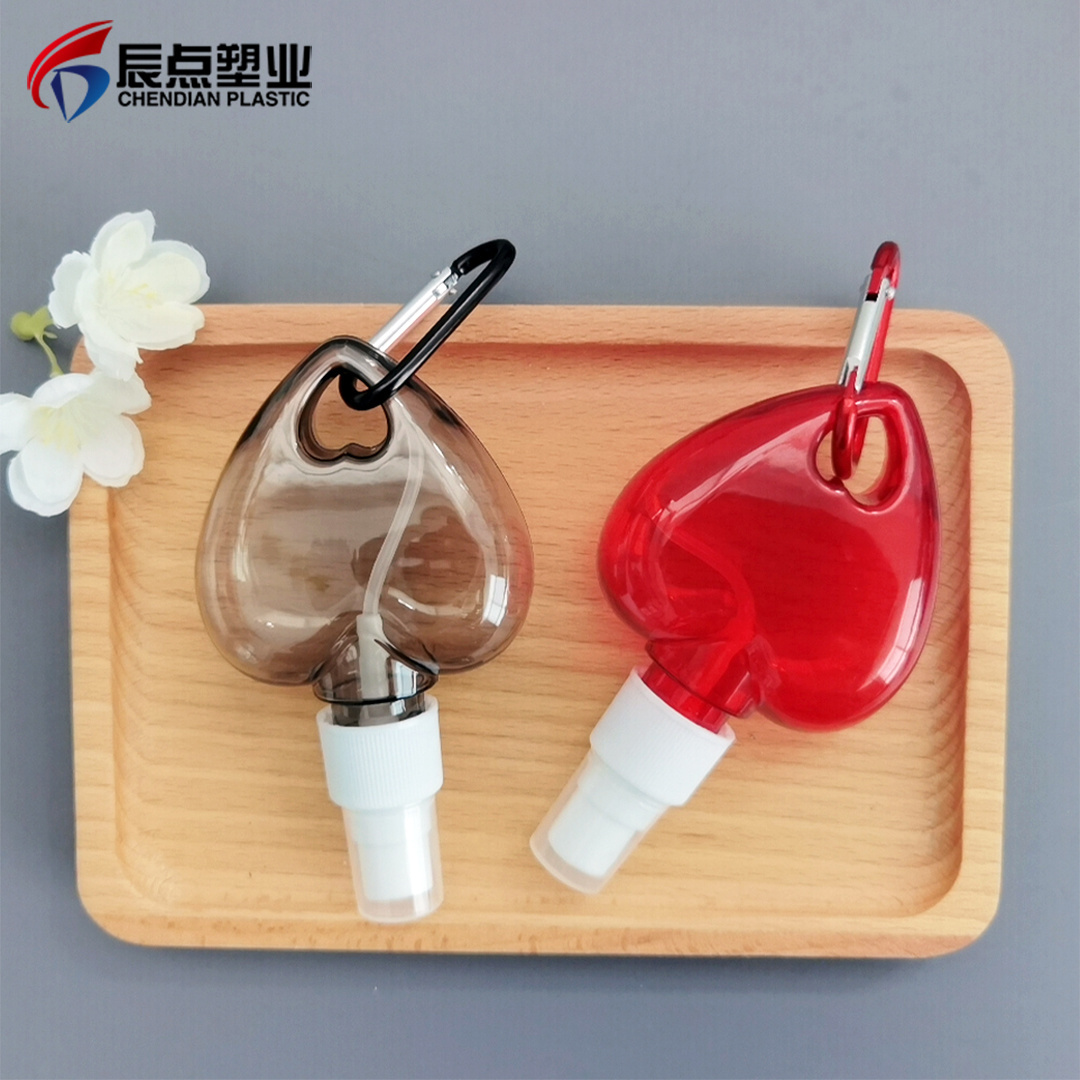 Factory direct sale 50ML PETG heart shape key chain hang bottle spray bottle flip bottle