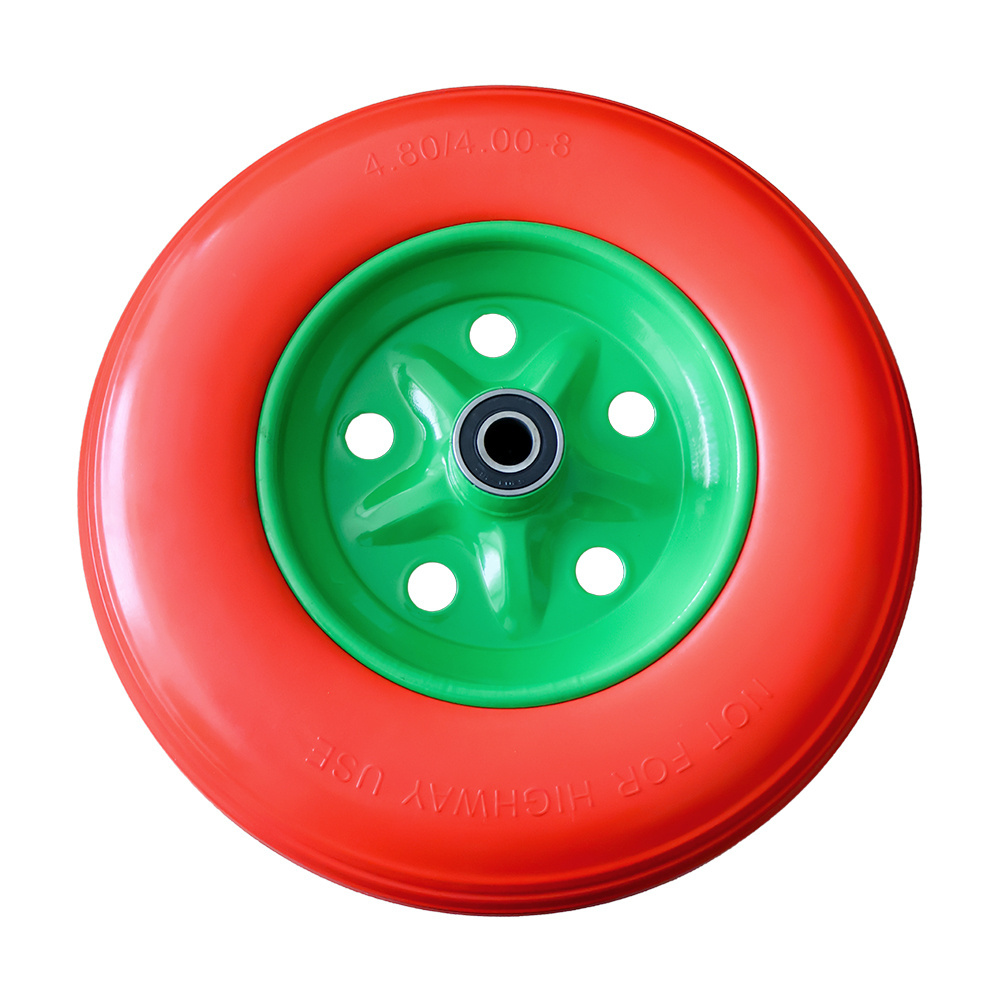 * Versatility: PU flat-free wheels are available in various sizes and load capacities, making them suitable for different applications such as hand trucks, carts, wheelchairs, lawnmowers, and more.