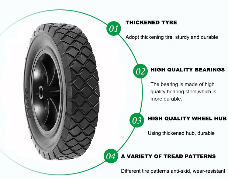 8x1.75inch Universal Flat Free Lawn Mower Wheels Solid Rubber Hand Truck Wheel