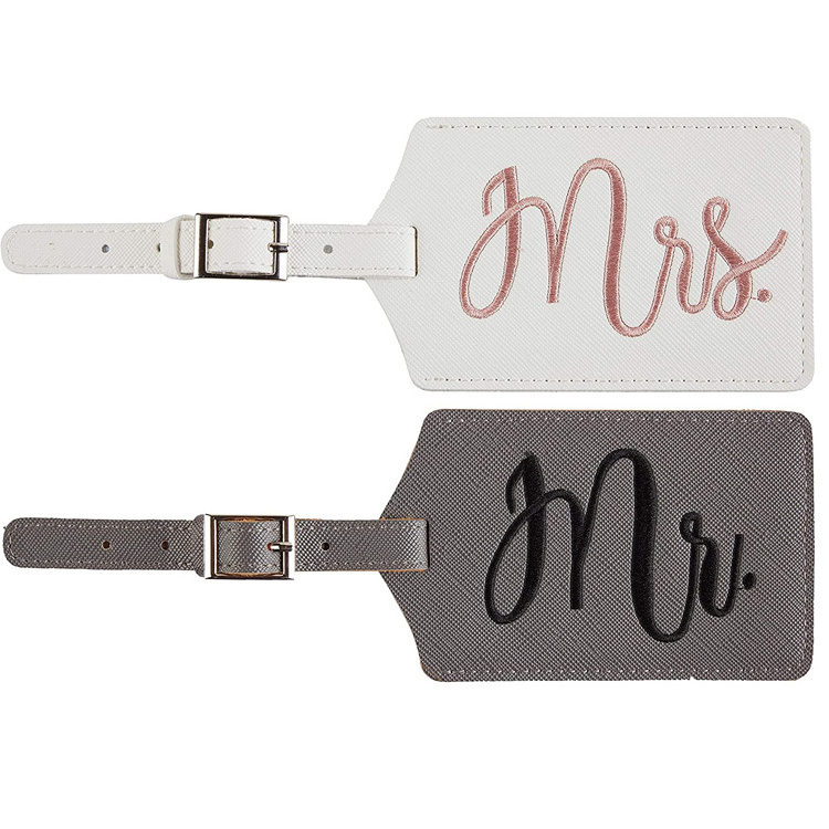 1 luggage tag with embroidered "Mr.", 1 luggage tag with embroidered "Mrs.". Gift for Weddings, Bridal Shower, Honeymoon, Couples, Anniversary, Valentines Day, Christmas, Cruise, Engagement, Newlywed couples, This is one of the indispensable gifts.