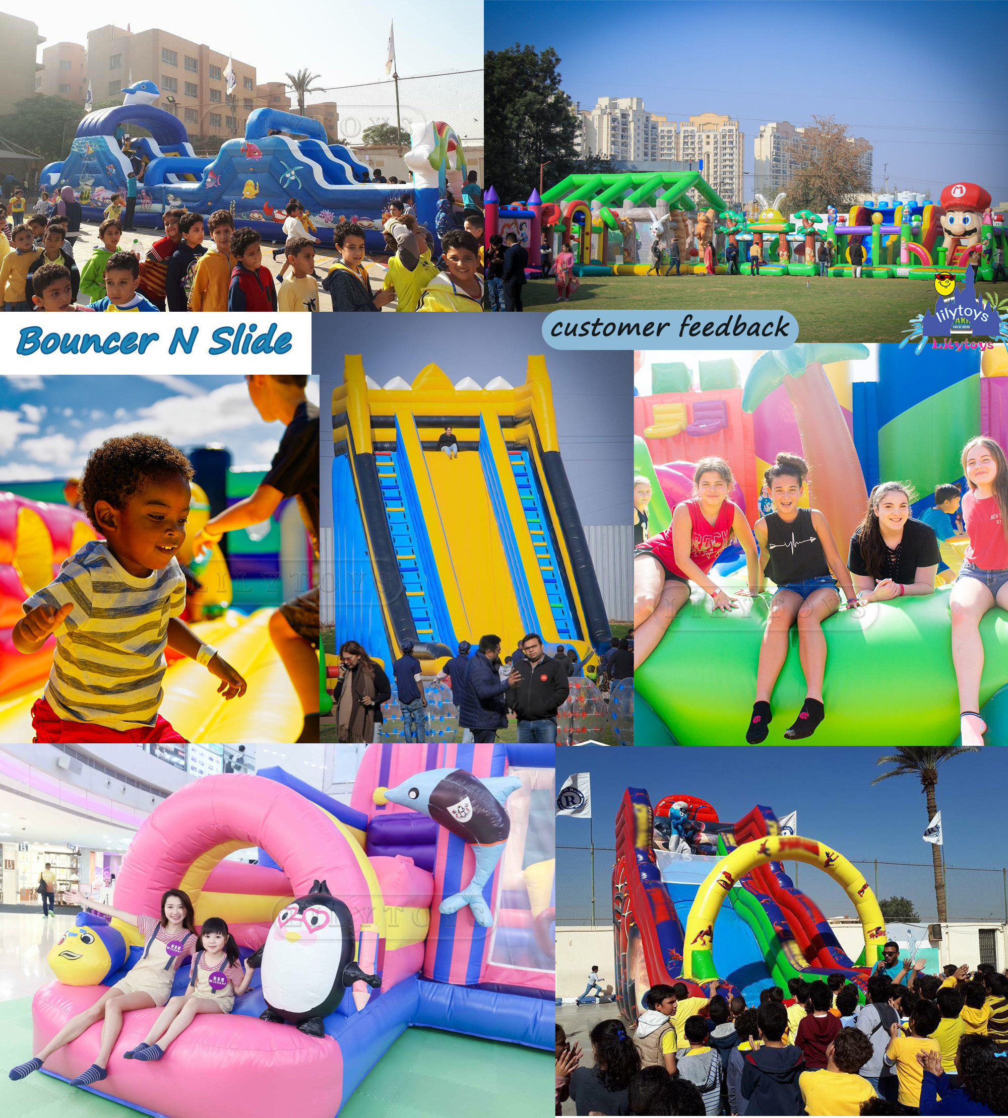 Lilytoys use costomized high quality material which anti UV ,waterproof and fireretardant . it makes longer life span of water