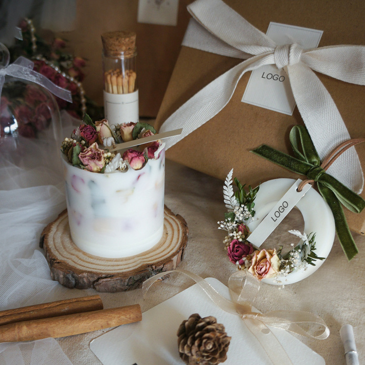 Luxury candle slice matchstick gift set candles scented aromatherapy dried flower handmade scented candle