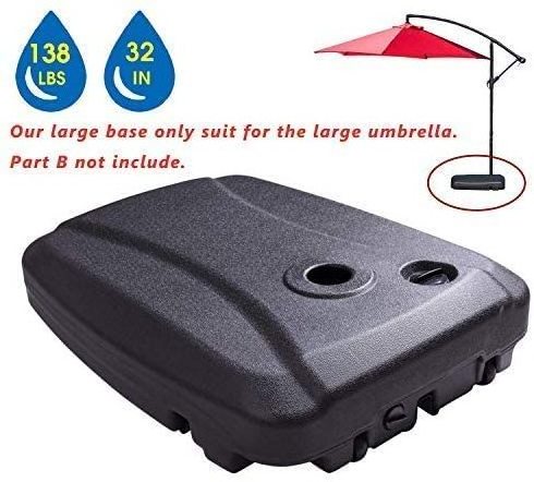 * HEAVY CAPACITY - Our large backyard umbrella stand can be filled with water, and is easy to fill and drain. Max capacity more than 120lbs water, so that provide additional weight which make your offset patio umbrella stand perfectly even through heavy winds.
