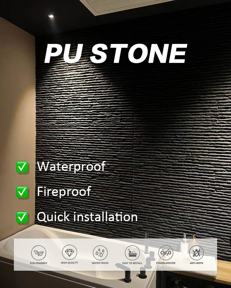 4. Use screws or nail-free glue or steam nails to fix PU stone panel on the wall (screws are recommended for wooden walls and nail-free glue for cement walls).