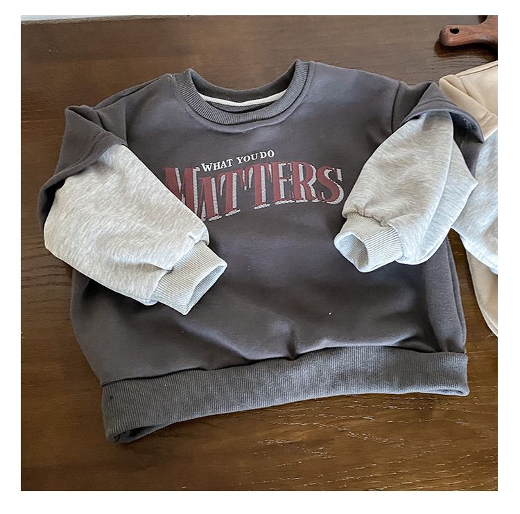 Children's hoodie for spring and autumn, fake two piece spring outfit for boys and girls, 24 new spring loose letter top