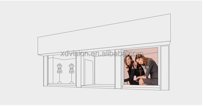 The screen can be used in any glass video wall, retail store, shopping mall, showroom or other window glass video solution application of choice