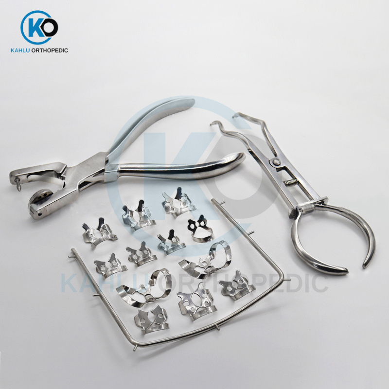 Rubber Dam Kit Orthodontic Punch Pliers Dental Rubber Dam Clamps Rubber Dam Frame Ivory Pliers Dentist Basic Tools Kit