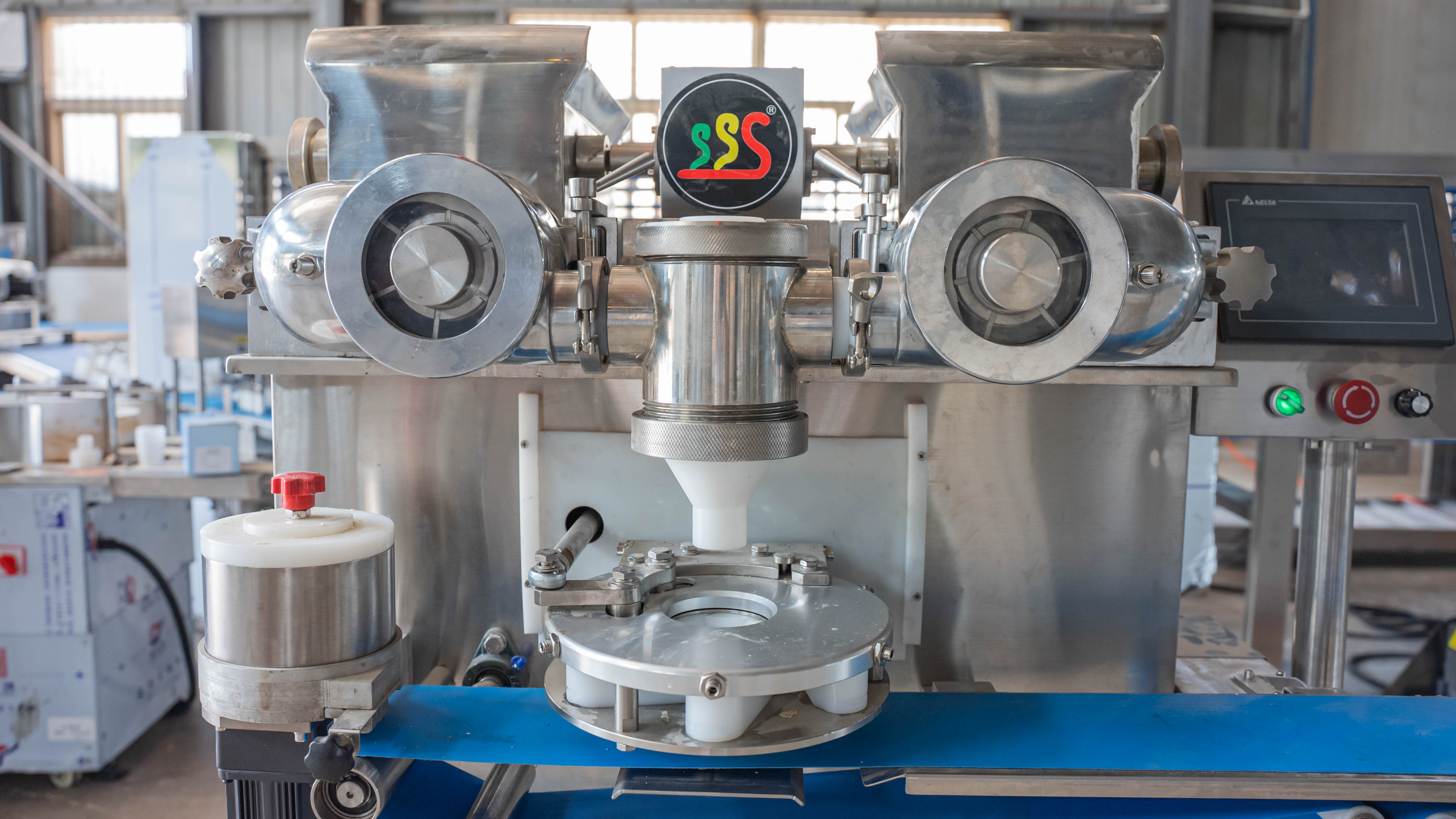 The machine adopts double twisted auger to transport raw materials and adopts a secondary transmission design. The raw material transportation speed is uniform, the oil returns quickly after baking, the color is bright, and the taste is good, just like a manual package. The user-friendly operating system is simple and easy to understand. The ratio of skin filling and filling can be adjusted arbitrarily, and the quantification is accurate; it is convenient and fast; the whole machine has a compact and reasonable structure, a high degree of automation, and is easy to disassemble and clean. The filling machine can adapt to different fillings, such as five-nuts filling (whole peanuts, nuts, rock sugar will not be destroyed), bean paste filling, fruit filling, fresh meat filling, ham filling, sesame sugar filling, etc. It can also be used for liquid filling. (Jam, chocolate and other cookie-style fancy cakes.)