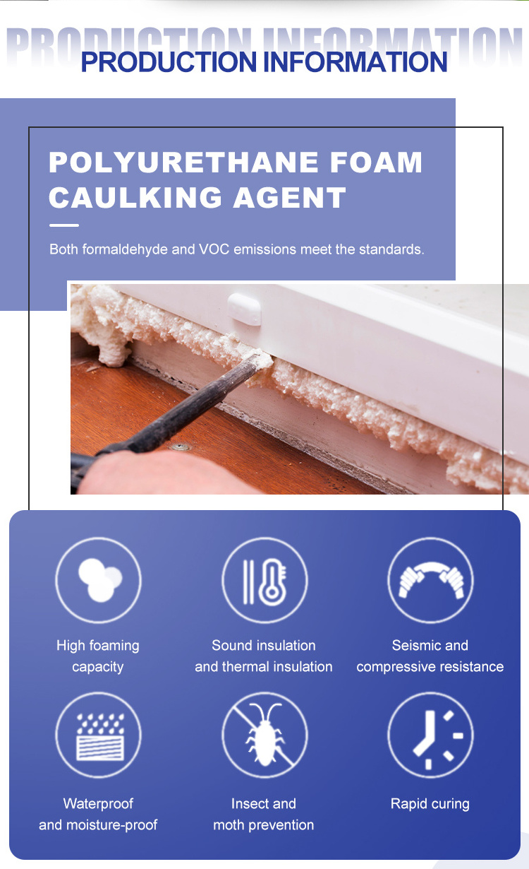 General purpose Door and Windows Mounting Fireproof PU Foam Polyurethane Foam For Construction Sealing