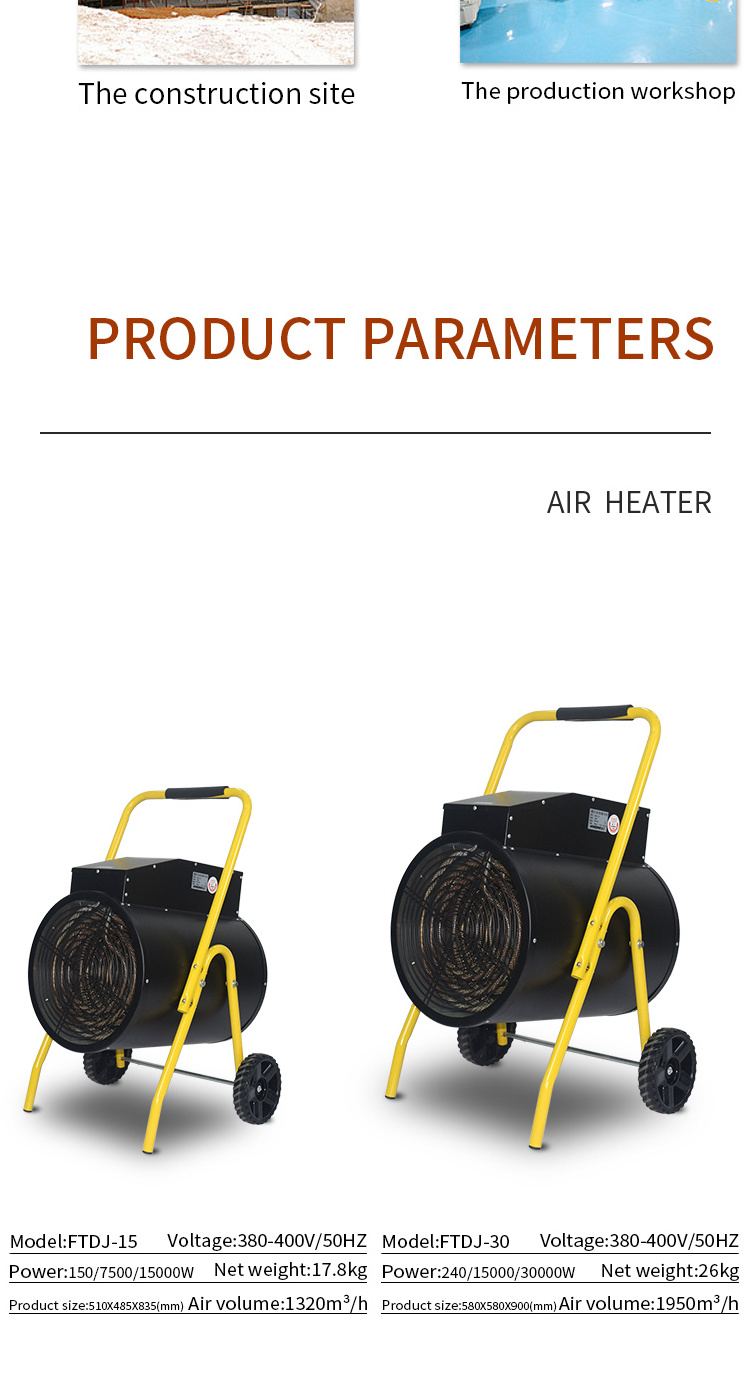 Push-type Quick Heating Power Outage Protection Electric Industrial Air Heater