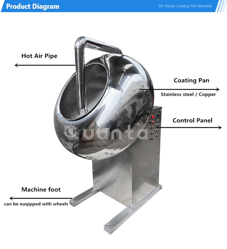 Standard model of BY coating pan machine with hot air pipe , speed control of the pan rotation :