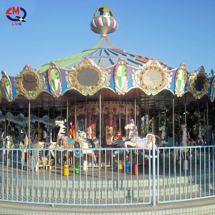amusement, also called musical merry go round. Carousel ride is suit for both children and adults to play in amusement park,playground, shopping center and family entertainment centers. Movement of going up and down with festive music bring players a lotexcitement. Carousel ride is usually equipped 3/6/12/24 or more seats.