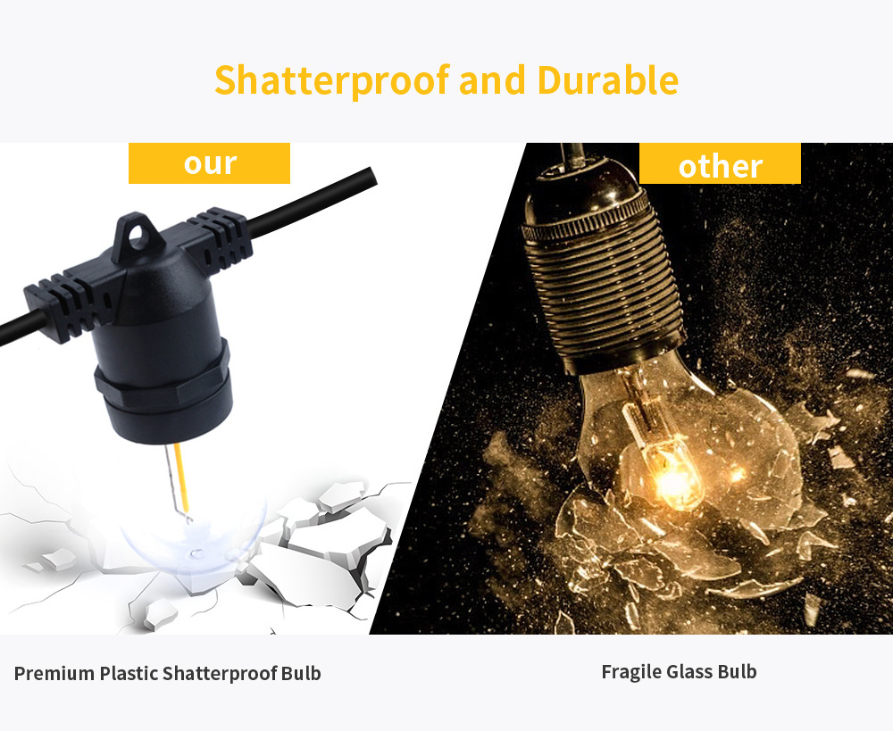 6. IP65 waterproof durable string lights can withstand extreme temperatures, rainy, windy, or damp climates.