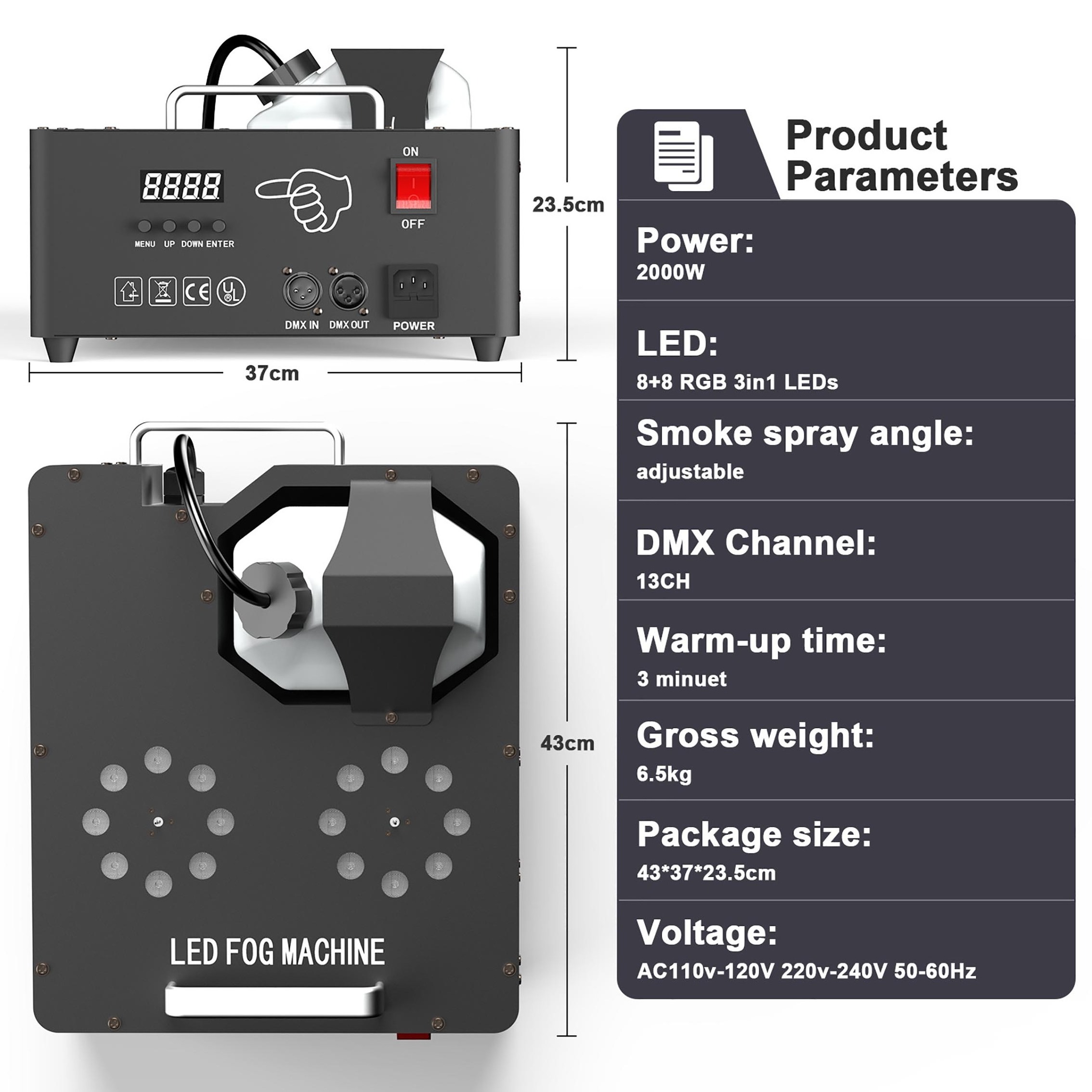 2000W Adjustable Special Lighting Effect Smog Machine Wedding Stage Bar Machine Light with Remote Control Smoke Machine