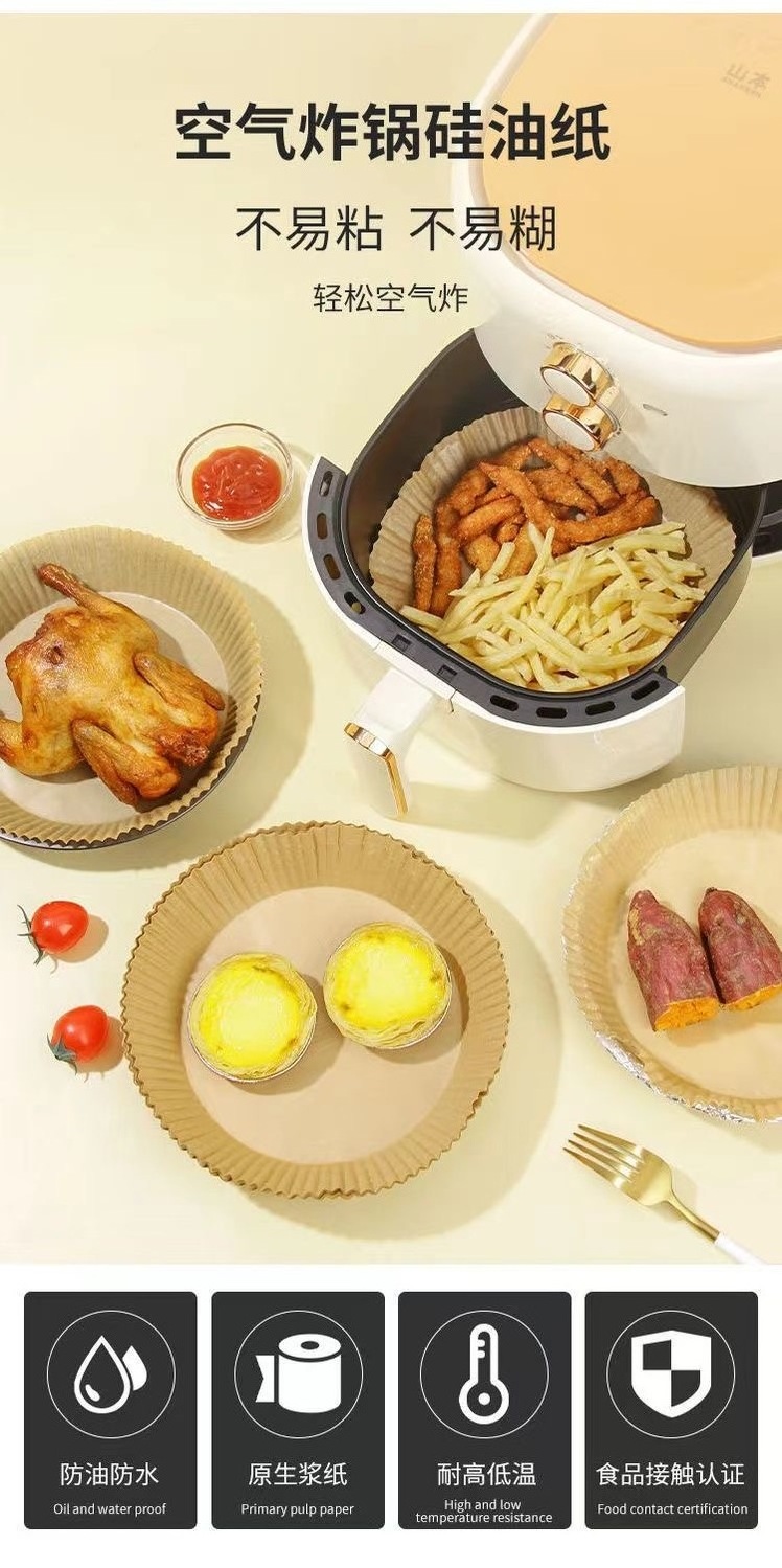 Self-bakery air fryer paper is made from 100% food grade wood pulp.Eco-friendly ,100% recyclable and biodegradable.
