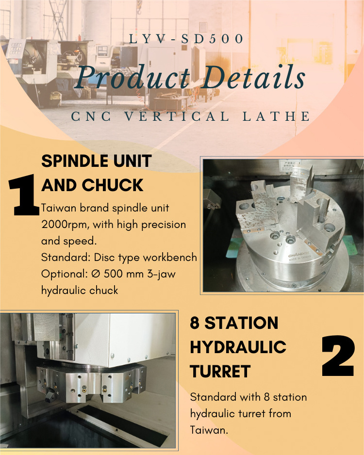 4. LYV-SD500 Vertical Turning Lathe not only can easily satisfy the general components of turning processing, can also be equipped with double functions of the brake disc double-sided processing modular design at the same time, more extensive application fields.