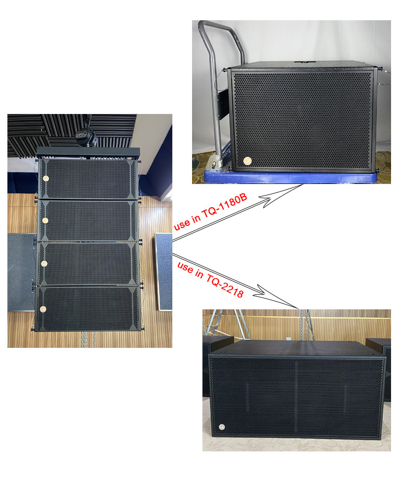 3、TQ-2210 uses hyperbolic reflected wave source technology, which can couple multiple speakers into a linear array system. It can also be used by a single speaker, and the cabinet can be combined horizontally or vertically. The speaker is equipped with a professionally designed hanging system, plug and play, and has a powerful output effect. The nominal sensitivity of TQ-2210 can reach 103dB SPL at 1W@1m, and the maximum sound pressure of a single box is 134dB. The sound pressure of the array module is determined by the number of speakers and the set angle.