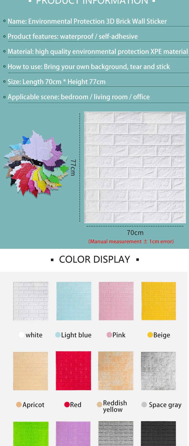 Self-adhesive, Back with glue, easy to install, texture 3d