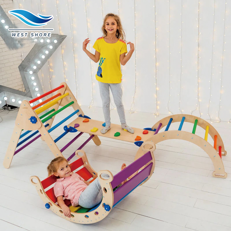 Montessori Rainbow Wooden Kids Piklers Triangle With Ramp And Rocking Climbing Triangle Indoor Pickler Triangle GYM Playground