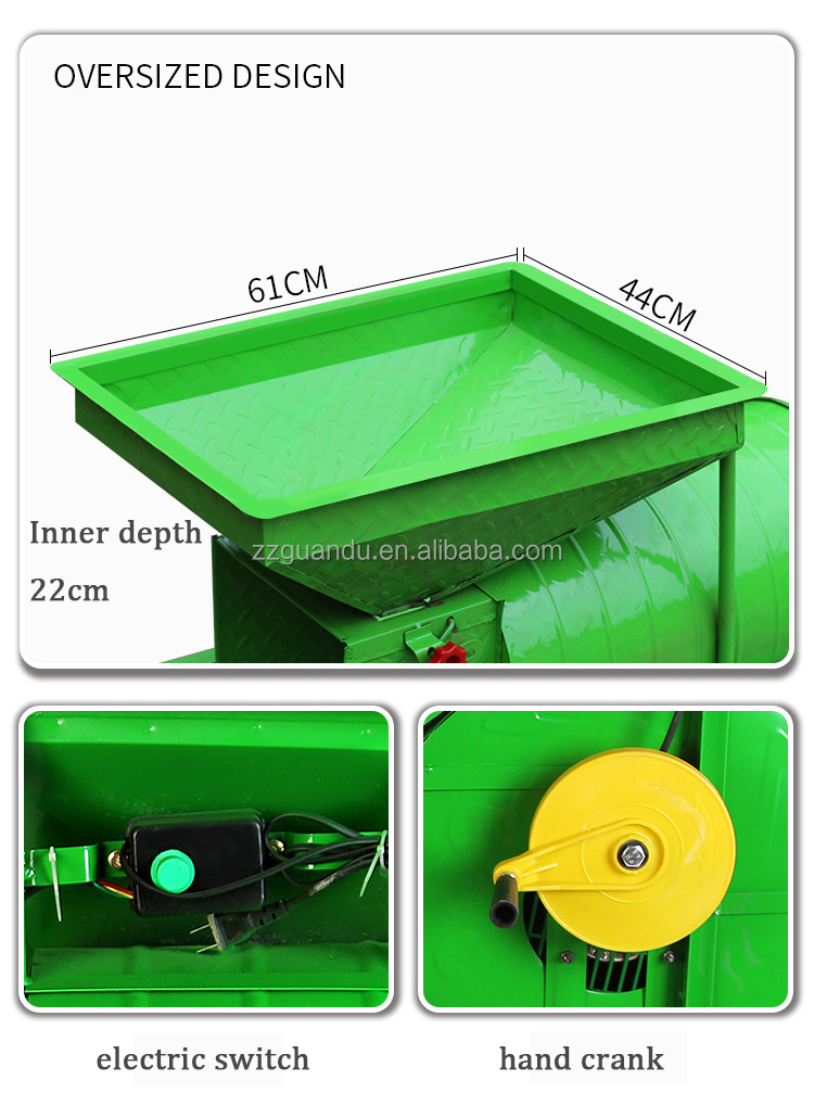 The machine is equipped with an exported high-quality stepless variable speed motor, and the wind speed is adjusted by turning the stepless variable speed adjustment knob. According to the different specific gravity of the crops, it can control the full and unfulfilled particles (depressed, moth-eaten, mildew, etc.) of various crops. and impurities (rods, leaves, bran, insects, etc.) for high-quality and efficient sorting and lifting, such as rice, corn, wheat, sorghum, millet, rapeseed, melon seeds, beans (soybeans, coffee beans), etc.; The sorting of stem leaves and impurities of tea, tobacco leaves, medicinal materials and other crops also has very good results. The machine is easy to operate, light to rotate, convenient and safe, light in weight and high in efficiency. It is widely used in feed processing, breeding, plant harvesting and classification, food processing, crop removal, seed selection, brewing and other production fields and ordinary farmers. The machine can be used normally in manual mode when there is no electricity, which is very convenient.