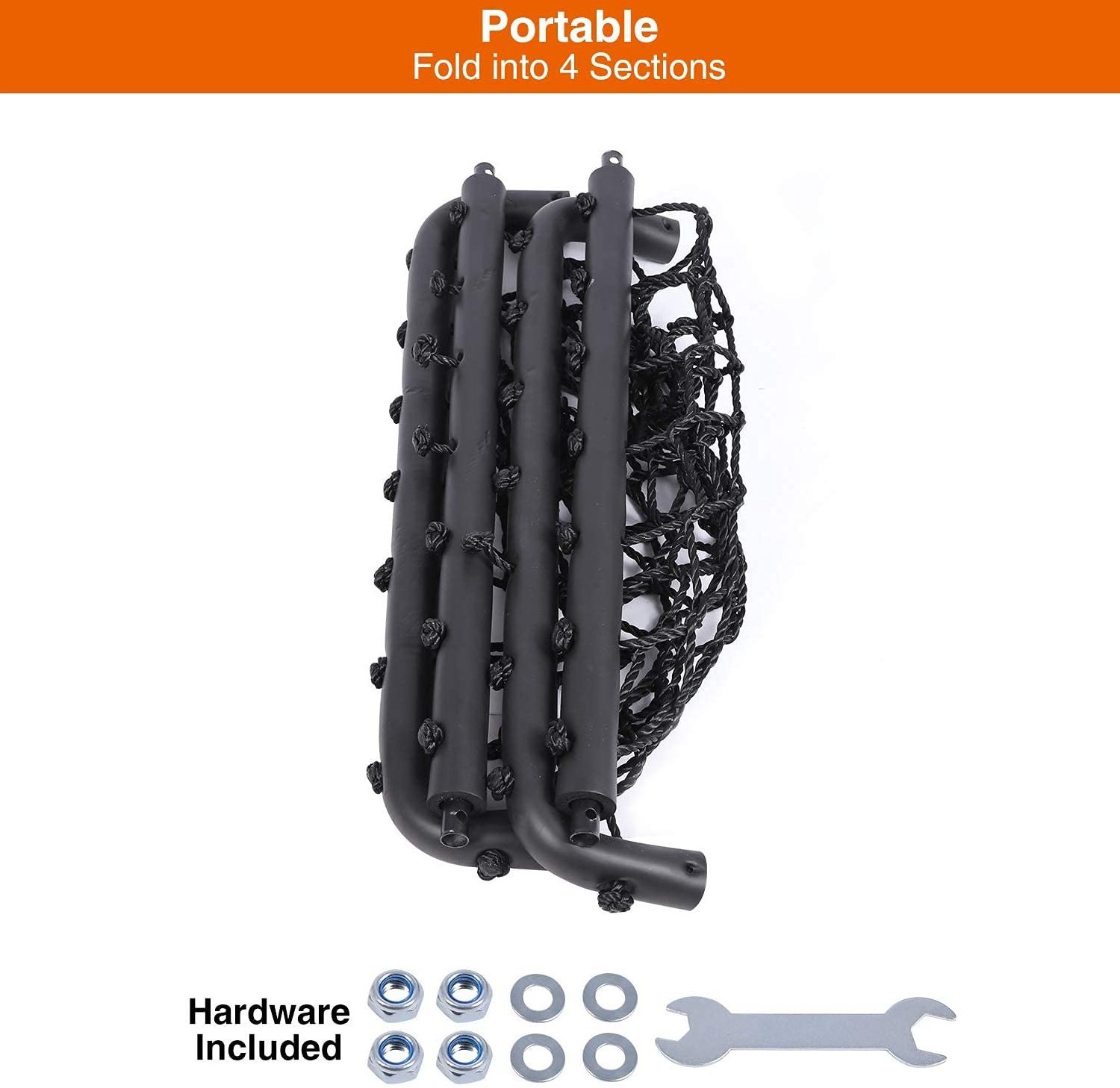 IRIS Spider Web Tree Swing is 40 Inch in length, easy to install on swing set or tree, our swing is large and heavy-duty enough for several children to play together. Swinging is the most popular activity for any outdoor playground or jungle gym! Complete or update your current backyard swing set with this Heavy-Duty Swing Seat. The tree swing provides instant fun to a backyard, especially when school’s out! Kids can swing solo or with friends to eliminate boredom one sunny day at a time. As a cozy escape, it makes the perfect spot to read, listen to music, nestle into a cocoon, and stimulate the imagination. Hang indoors so kids relax with gentle movement or mount it from a sturdy tree branch for play dates, picnics, and parties. The extremely durable ropes work on almost all trees, swing sets, or posts with sturdy suspension. It’s portable, so you can re-locate the fun anytime or pack it away when not in use. Specification: Length: 40", Width: 30". Max Capacity: 660 pounds Frame Material: Steel. Recommended Age: 3 years & up. Package List: 1 x 40" Spider Web rectangular swing, 2 Adjustable Tree Straps, 2 Ropes, 2 Carabiners, Accessories.